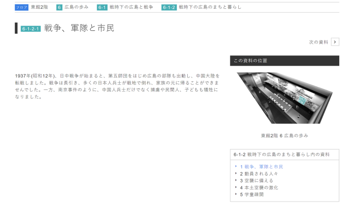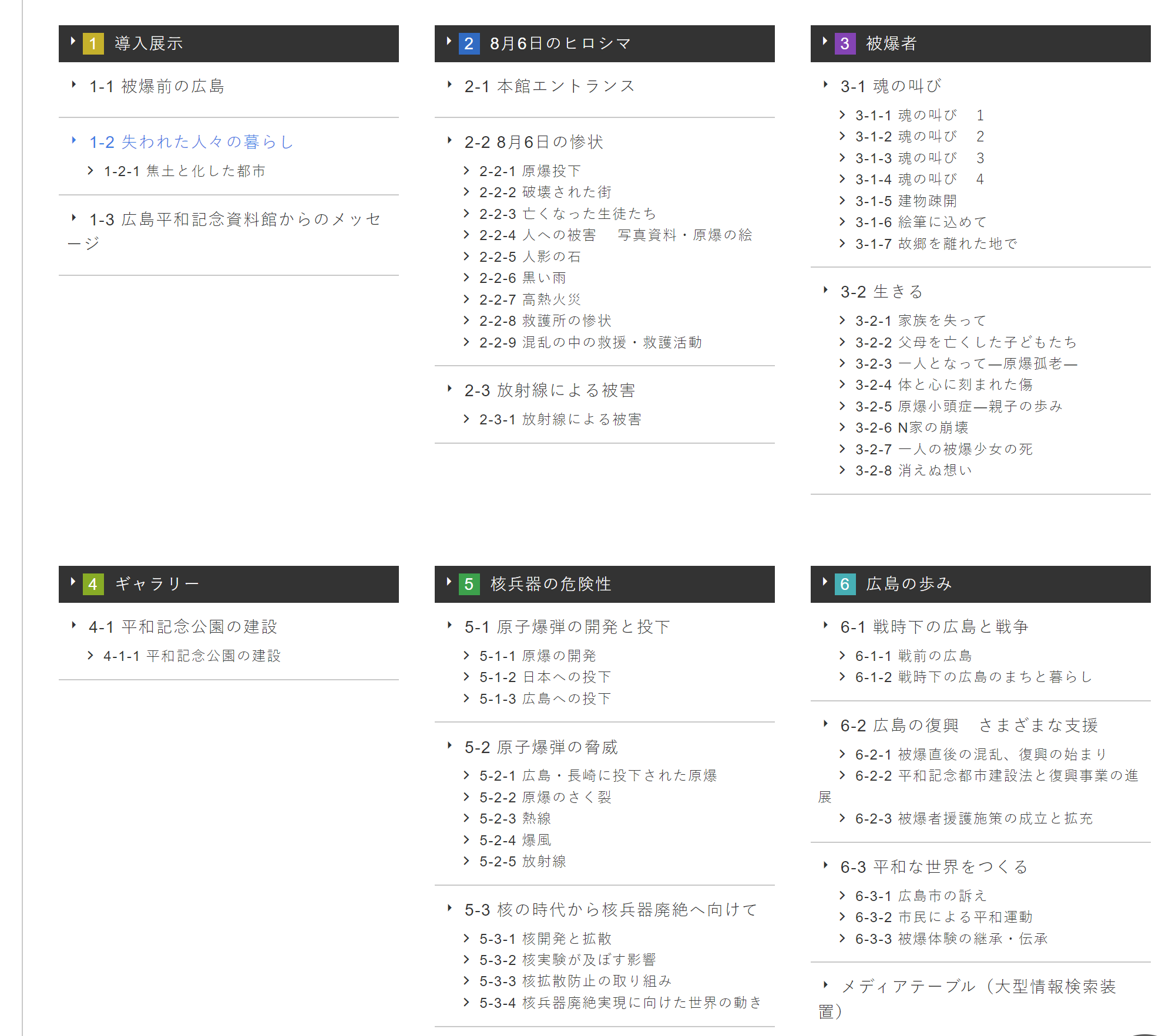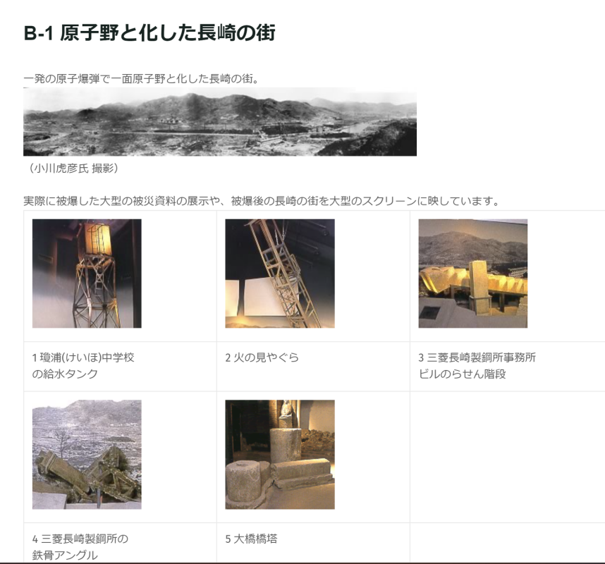 廣島的紀念館,叫做“廣島和平紀念資料館”,參考官網信息,我們可以得到這個館內展覽的傾向:強調核爆死傷的平民的體驗,主要強調了核彈投下之後的後果,核彈對平民的危害,以及核彈的危險性。