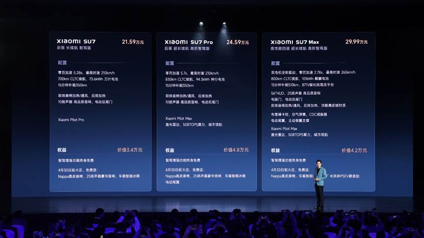 3月28日,在這個提前了大半個月便開啓預熱的小米汽車發佈會上,萬眾矚目的小米汽車首款量產車型SU7的售價終於揭開了廬山真面目。