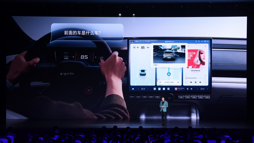 反映在車端,便是小米SU7不僅有小米澎湃 OS、底層打通的座艙互聯體驗、人車家全生態,更實現了小米自研的「MiLM-1.3B」端側大模型首次上車。被大模型全面加持的小愛同學,不僅能實現語音交互控車,還能夠融合車的位置、方向、視覺等信息,讓汽車像人一樣理解真實世界。