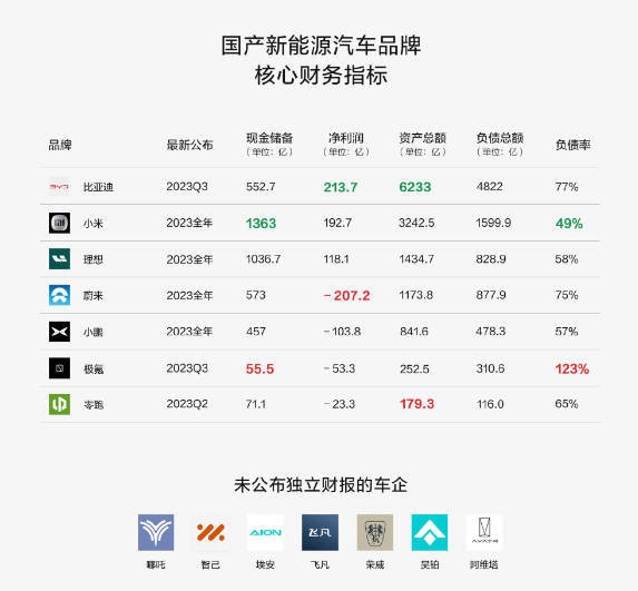 另一方面,從小米集團公佈的財報狀況來看,當前小米公司的先進儲備高達1363億元,橫比其他國產新能源汽車品牌,不僅資金池最為豐厚,其公司負債率也最低,按照去年小米汽車相關業務在集團中投入67億元計算,公司也足以支持雷軍的“最後一次創業”10年以上。
