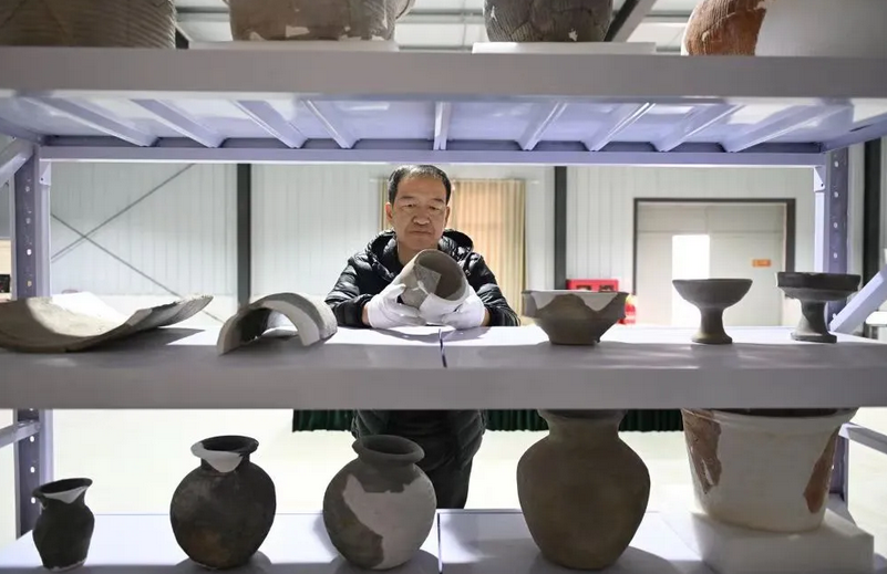 3月26日,雄安新區文物保護與考古工作站負責人雷建紅在整理南陽遺址出土文物。新華社記者 牟宇 攝