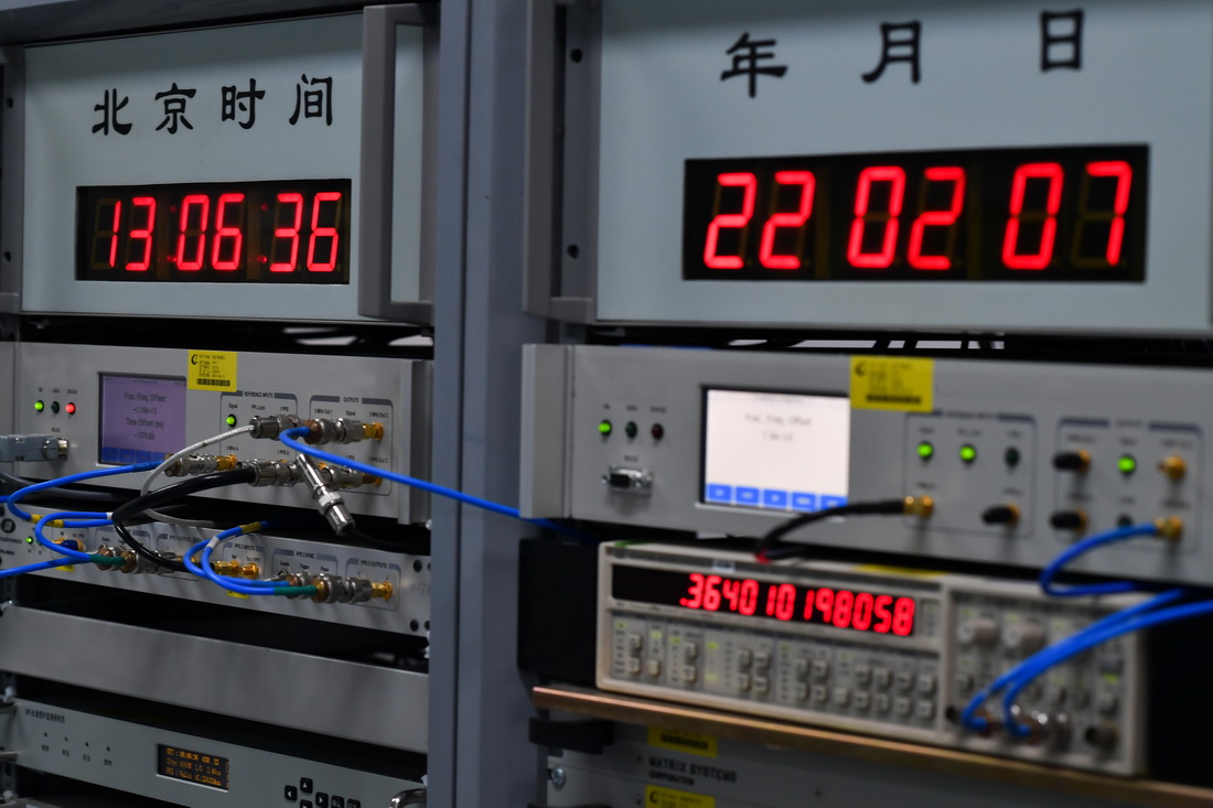 中國科學院國家授時中心時間頻率基準實驗室北京時間監測系統(2022年2月7日攝)。新華社記者 張博文 攝