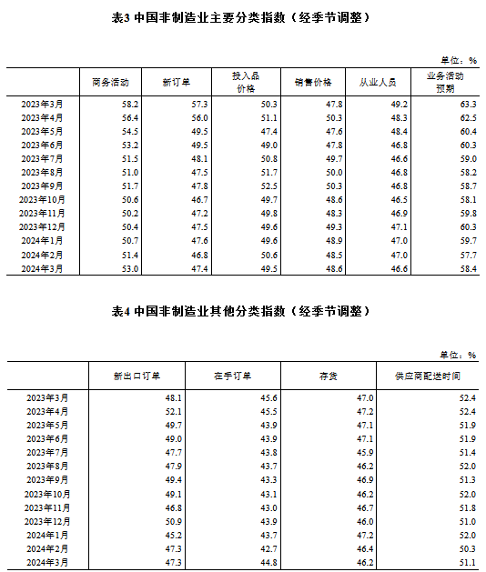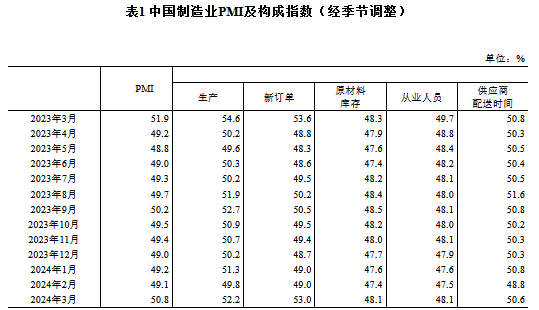 國家統計局網站3月31日發佈2024年3月中國採購經理指數運行情況。