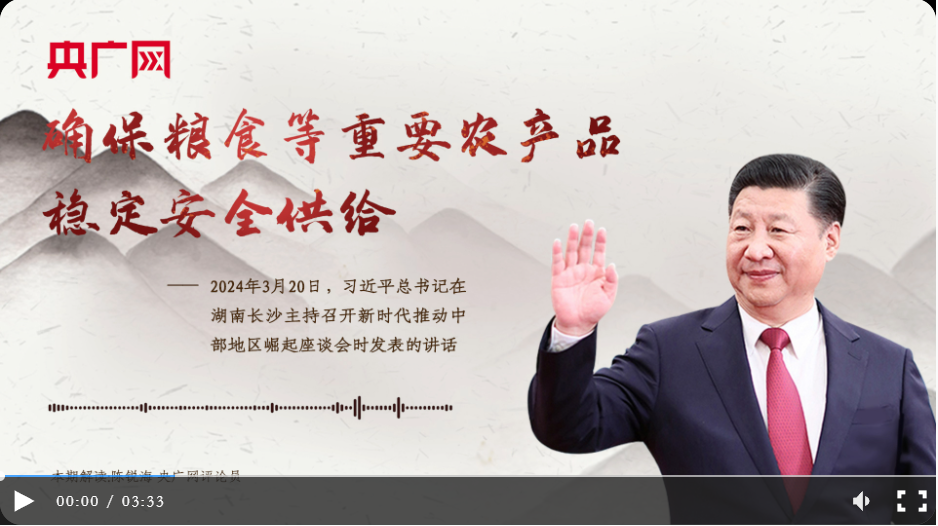 在這次座談會召開前夕,習近平總書記來到湖南傳統產糧區常德市,走進田間、農家,同種糧大户、農技人員和基層幹部深入交流,察看當地春耕備耕和推進農業現代化情況。總書記強調,我國有14億多人口,糧食安全必須靠我們自己保證,中國人的飯碗應該主要裝中國糧。