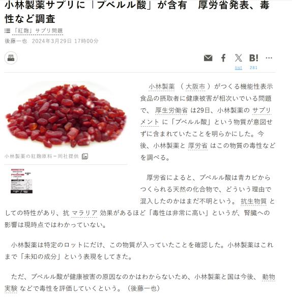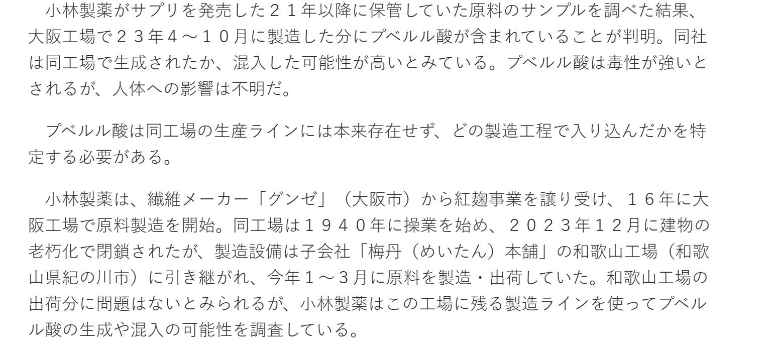 如此看下來,原本的產線是2023年投入紅曲製造,並且那一批次都被查出了問題,但經過日本政府調查,同產線並沒有衞生安全問題,那就只剩下一個答案:大概率是小林製藥的配方有很大的問題。