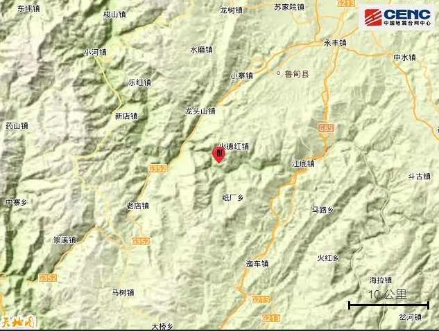 中國地震台網正式測定:4月6日10時29分在雲南昭通市魯甸縣(北緯27.01度,東經103.44度)發生4.9級地震,震源深度10千米。
