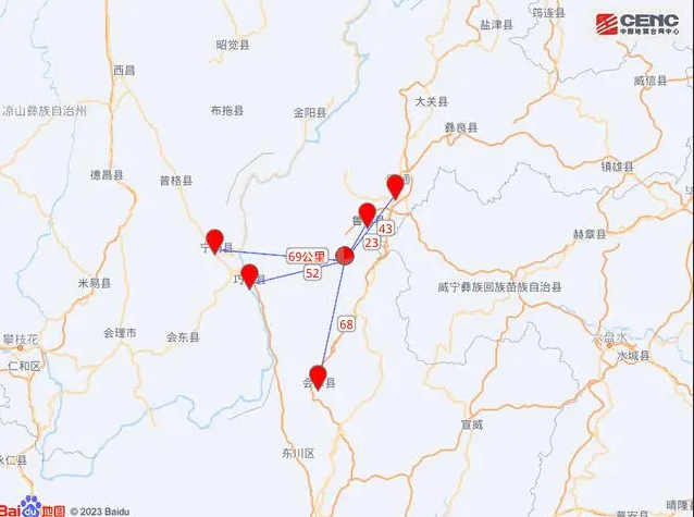 震中距魯甸縣23公里、距昭陽區43公里、距巧家縣52公里、距會澤縣68公里、距四川寧南縣69公里,距昭通市46公里,距昆明市231公里。