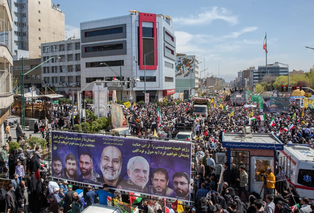 4月5日,伊朗在全國多地舉行“聖城日”大規模示威遊行活動。數萬民眾聚集在伊朗首都德黑蘭市中心,高舉伊朗和巴勒斯坦國旗,抗議以色列在加沙地帶的軍事行動。報道稱,伊朗方面5日在為襲擊事件遇難者舉行的公開葬禮上誓言要報復以軍襲擊,儘管尚未透露報復的時間和形式,但加劇了外界對伊以爆發直接戰爭的擔憂。