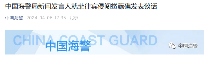 中國海警局新聞發言人就菲律賓侵闖鱟藤礁發表談話