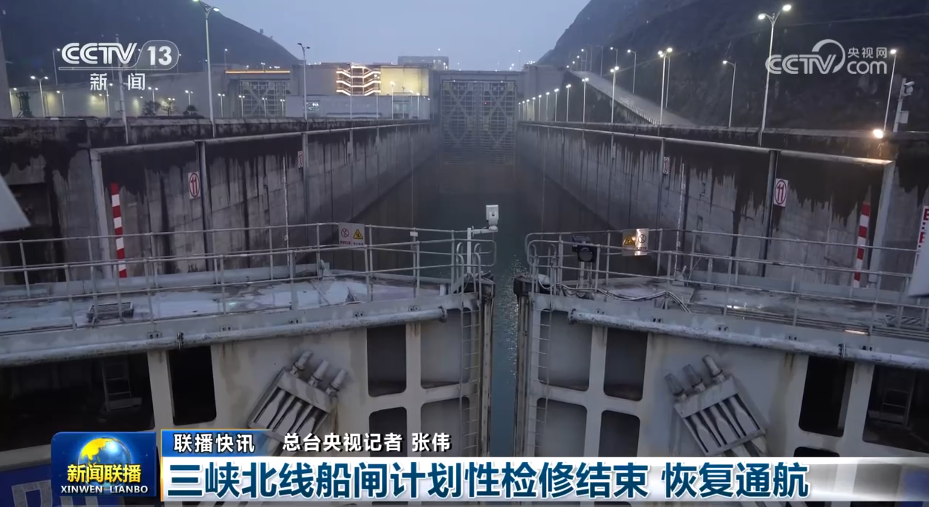 (7)三峽北線船閘計劃性檢修結束 恢復通航;