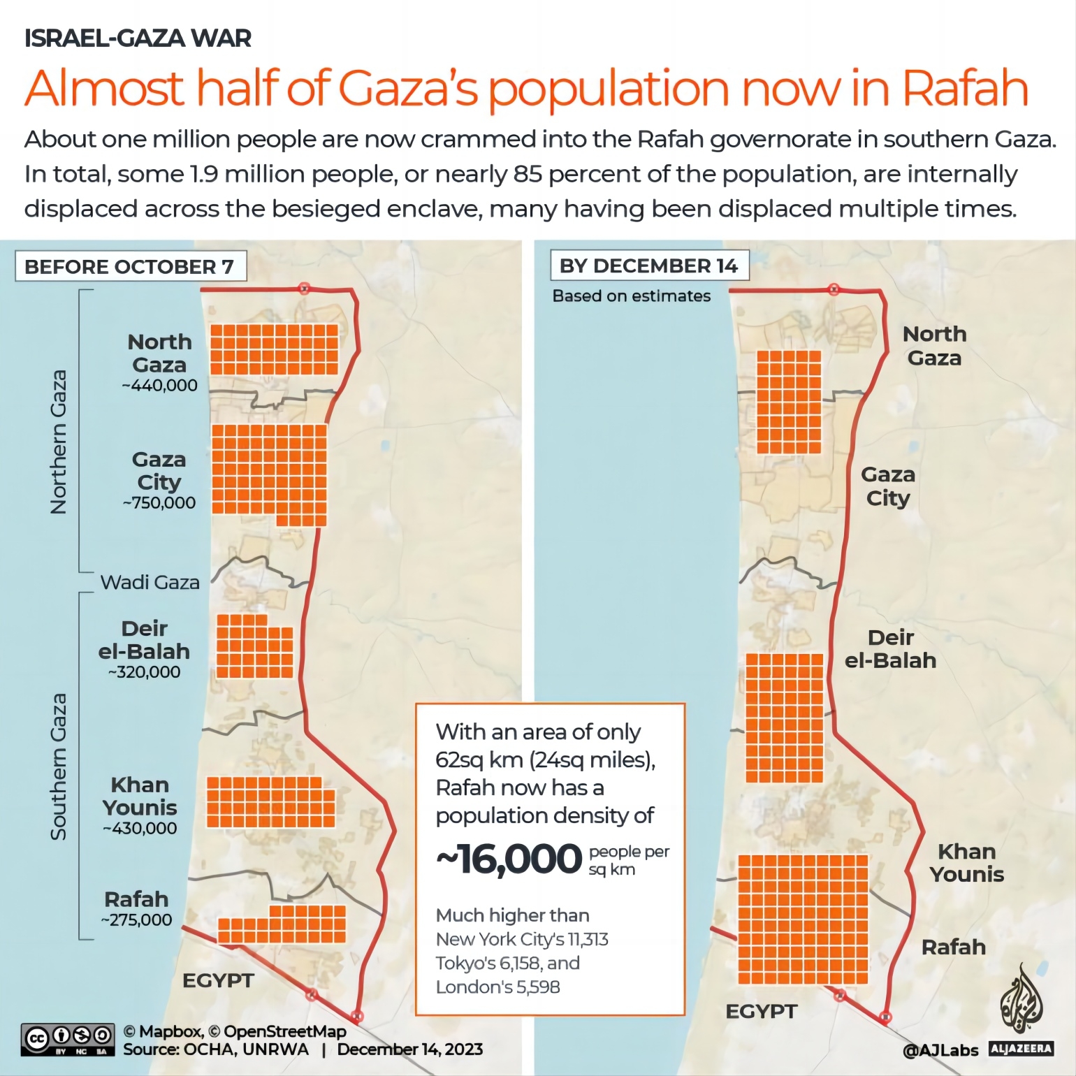 加沙半數人口目前集中在拉法(圖源:半島電視台)
