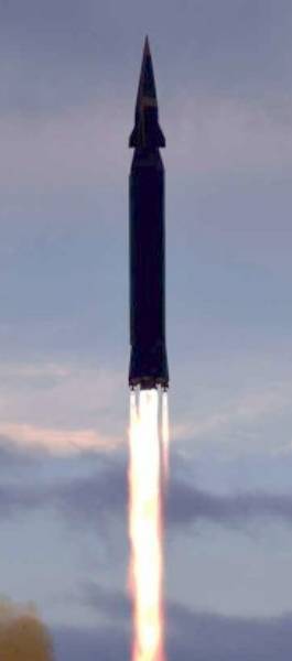 但這次進行試驗的“火星16B”卻完全不是那麼回事兒,這是一枚二級固體燃料中遠程導彈,頭部則是一個升力體外形的滑翔器。