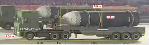 火星18導彈的一級發動機直徑已經達到了1.8米,二級和三級直徑1.4米,而“北極星”系列導彈的直徑估計1.4米,後來發展到1.8米,這次“火星16B”的發射筒直徑約為2米,其滑翔器的寬度約為1.4米,一級二級發動機直徑沒有區別,估計也是1.8米直徑。