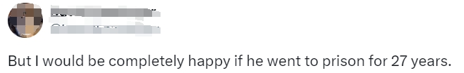 “但如果他能在監獄裏待上27年我會非常開心的。”