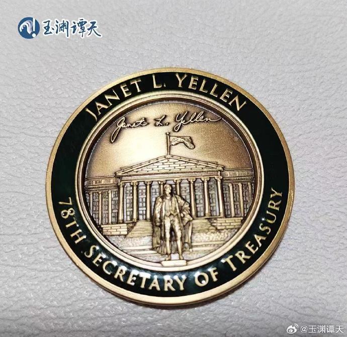 隨後耶倫也回贈了刻有她名字的美國財政部紀念章。