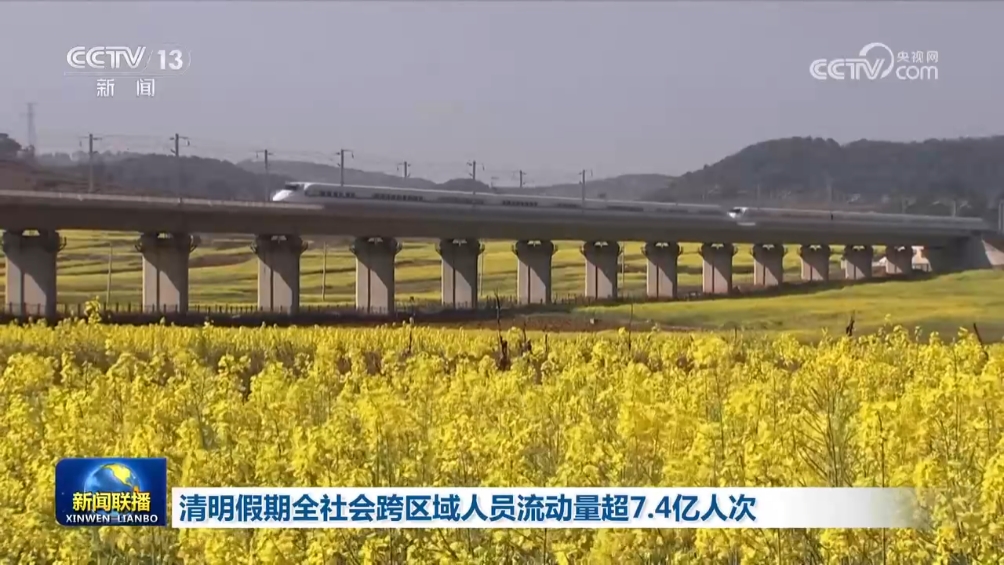 6.清明假期全社會跨區域人員流動量超7.4億人次;