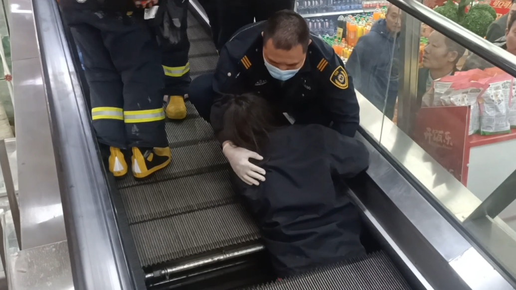 4月4日16時34分許,上海市奉賢區肖塘路萬家福超市內,一名女性通過自動扶梯上樓購物過程中,自動扶梯突然故障,其腰部以下被扶梯“捲入”。