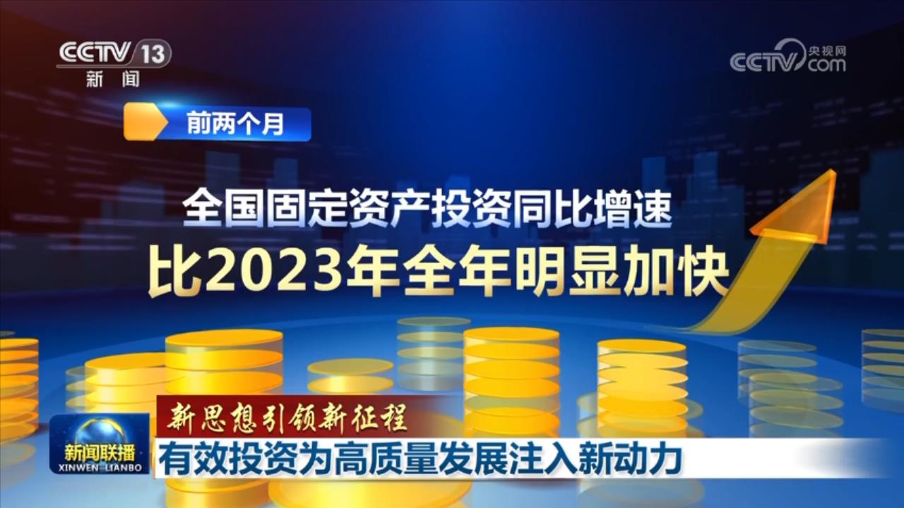 央視網消息(新聞聯播):習近平總書記強調,要完善擴大投資機制,拓展有效投資空間。今年開年以來,服務高質量發展成為擴大有效投資的重要着力點,投資規模持續增長,投資結構質量持續提升,助力中國經濟實現平穩開局。