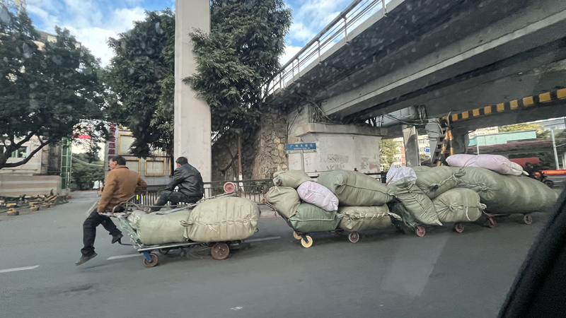 其三,生產和生活工具的非正規性。大量的自行車、電動車和改裝板車在產業集聚區——城中村的街巷中穿行,也是一種常態。這些車都裝載着超過他們承載力的貨物,在擁擠的街道中尋找縫隙,快速穿梭。城中村擁擠的空間和狹窄的道路,使得他們不得不如此。
