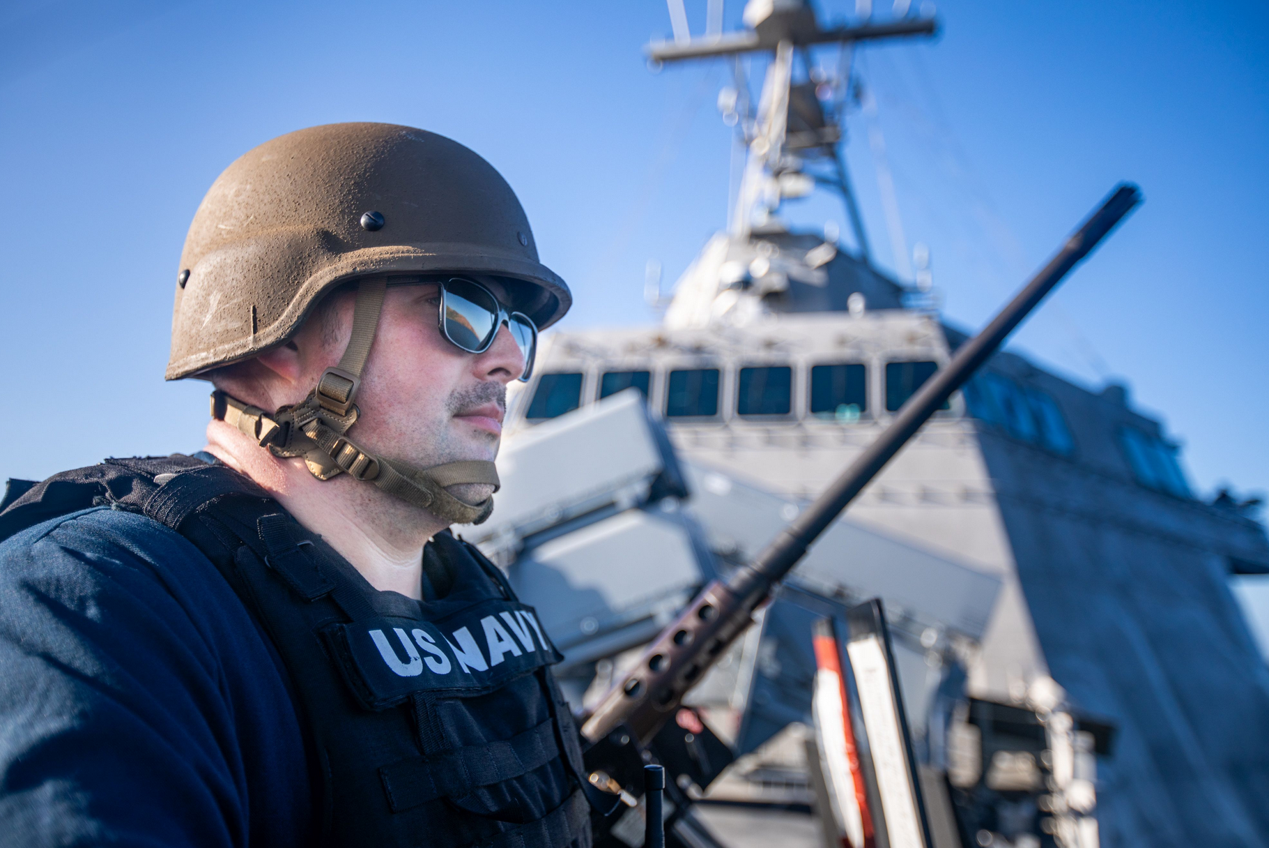 3月末,在南海地區部署的美國“獨立”級瀕海戰鬥艦“莫比爾”號(LCS-26),注意其甲板上增加的反艦導彈發射架 圖源:美國海軍