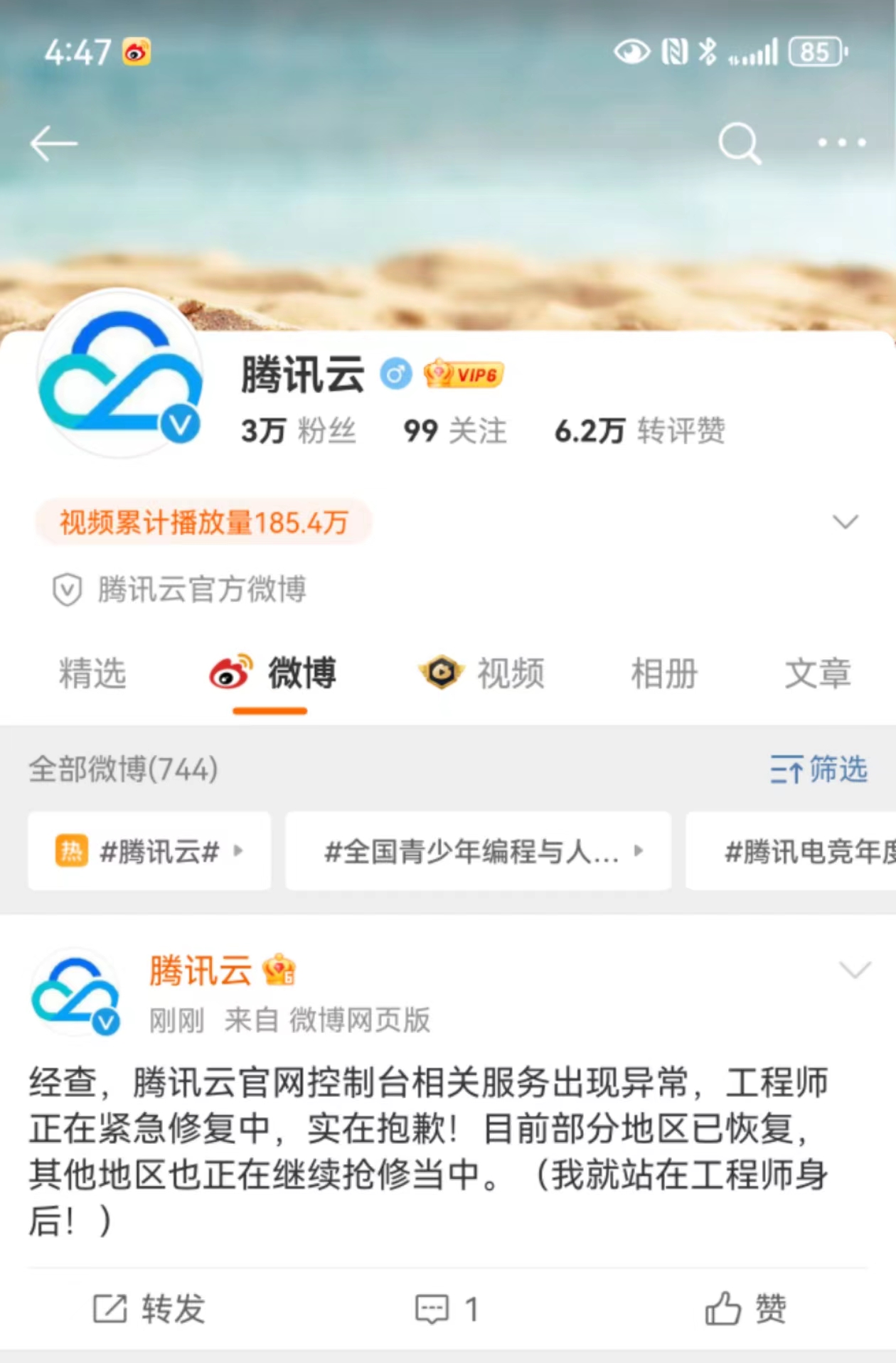 “騰訊雲崩了”上熱搜,官方:正在緊急修復中