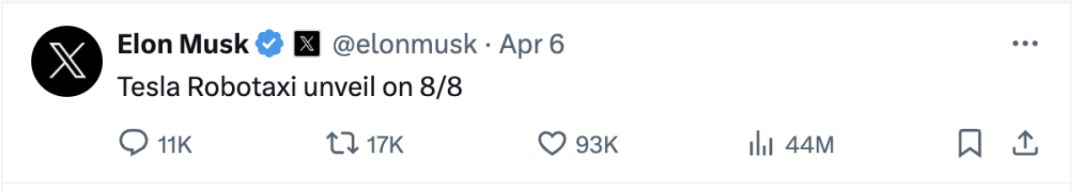 隨後,特斯拉CEO馬斯克在其社交媒體平台X上暗諷“路透社在撒謊”,並表示“特斯拉無人駕駛出租車將於8月8日亮相。”但這一回復似乎證實了部分路透社的曝光信息。