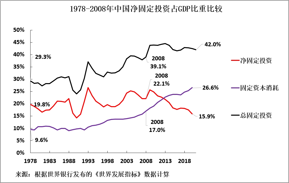 鑑於上文分析的相關性,淨固定投資佔GDP比重下降必然導致GDP增長率和消費增長率大幅下降。確切地説,自國際金融危機以來: