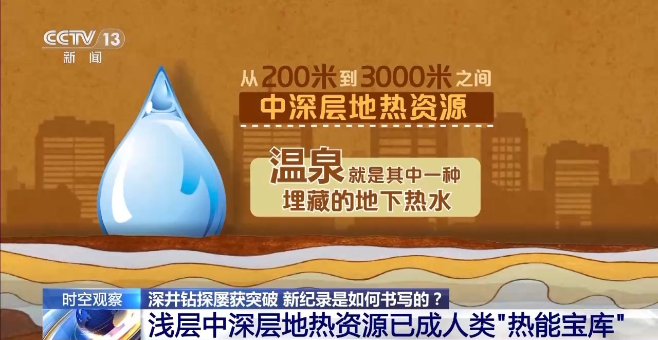 從地面鑽井,到地下200米以內,一般就是淺層地熱資源,温度低於25℃,它們的特點是温度全年保持穩定,可以利用地表與室外空氣温差,在冬季為室內供暖、夏季供冷。從200米繼續往下,到3千米之間,是中深層地熱資源,埋藏的地下熱水也就是我們熟知的温泉,就是其中一種。