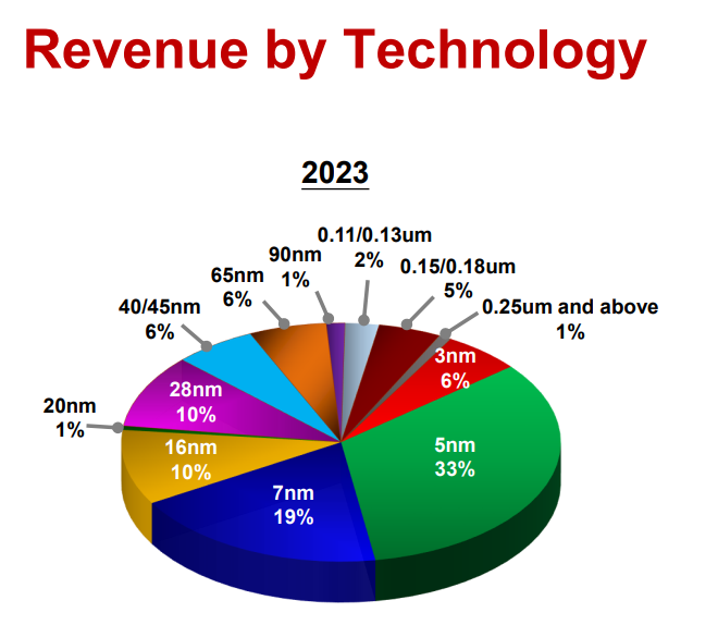台積電2023年各製程收入佔比