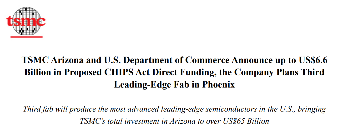 現在描繪出更龐大的計劃後,台積電再次將投資增加至650億美元,並承諾在當地直接創造6000個高薪工作崗位,這將是亞利桑那史上最大的一筆外商直接投資。