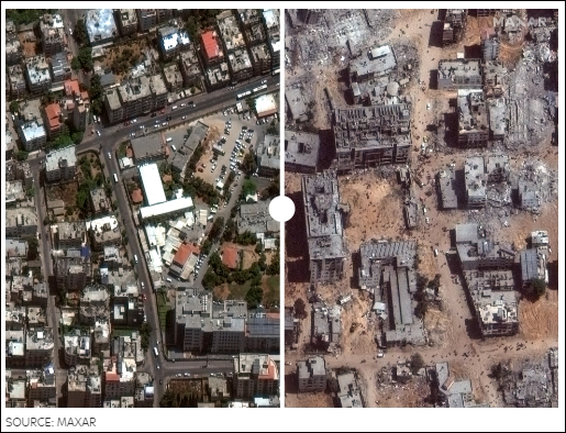 加沙最大醫院希法醫院:2022年6月對比以軍撤軍前,圖自Maxar衞星影像