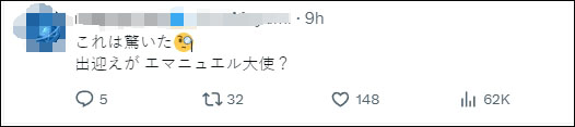 然而,相較於日本媒體的鼓吹,不少日本網民發現,根據日本首相官邸發佈的視頻,岸田與夫人走下飛機舷梯後,岸田僅與伊曼紐爾一個人握了手。