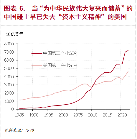 當代的西方發達資本主義國家早已偏離了“資本主義精神”,而日益變成追求消費和享樂的國家。其結果自然是其資本積累速度和經濟增速的下降。這一點又以美國為甚。當失去了“資本主義精神”的西方國家碰上“為中華民族偉大復興而儲蓄”的中國,自然是後者對前者的趕超。