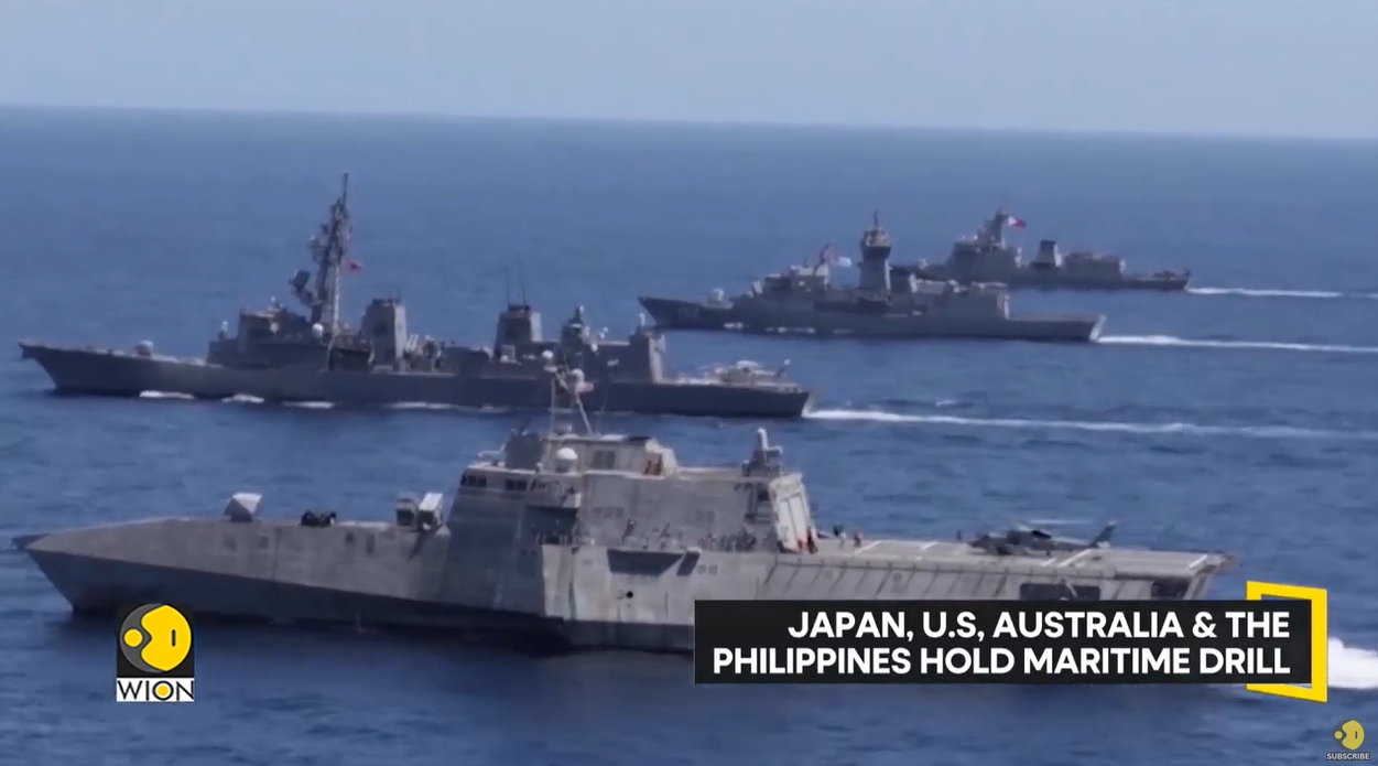 2024年4月7日,美日澳韓於中國南海聯合軍演(圖片來源:外媒截圖)