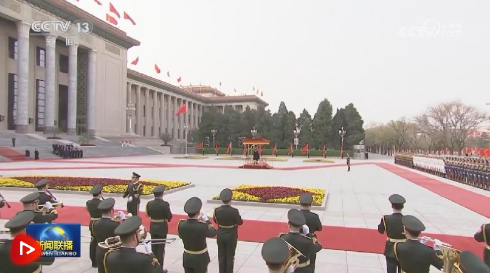 會談前,習近平和夫人彭麗媛在人民大會堂東門外廣場為西米納和夫人安瑟莉舉行歡迎儀式。