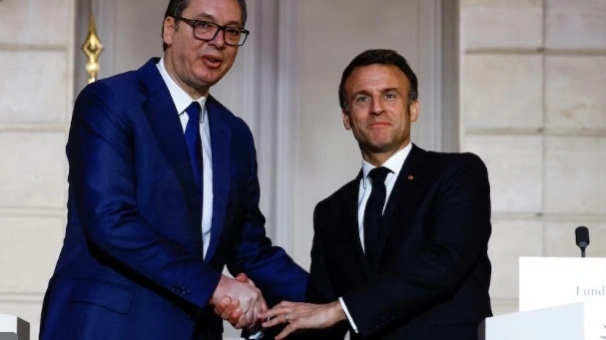 武契奇會見馬克龍 圖源:塞爾維亞外交部