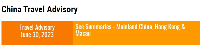 美國最近一次調整赴華旅行評級是去年6月30日,其將中國內地列為第三級,聲稱“由於當地法律的任意執行,包括與出境禁令有關的法律,以及不當拘押的風險,請重新考慮前往中國內地的旅行”。