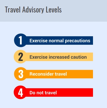美國務院定期發佈的旅行評級共有四級:一級為“採取正常預防措施”;二級則敦促旅行者“加強防範”;三級為“重新考慮是否前往”;四級建議人們“不要前往”。