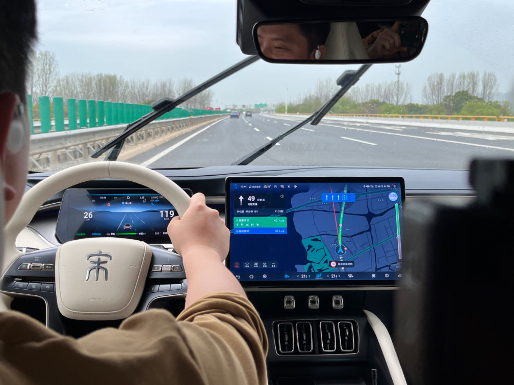 我們試駕的車型版本為宋 L 售價 24.98 萬的頂配車型,該車搭載前感應異步電機,後永磁同步電機的架構,最大功率 380 kW,最大扭矩 670 牛米,百公里加速時間 4.3 秒。