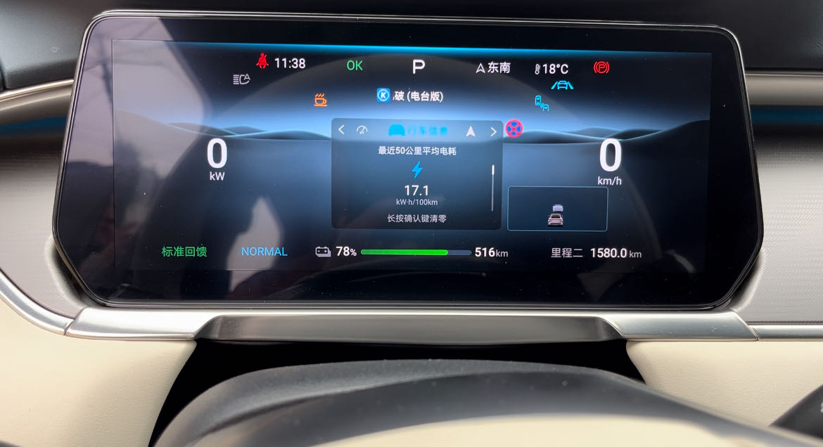 另外一個值得好評的點是,雖然我們試駕的車型是 4 驅版本,但在試駕當天的暴雨+高速的路況下,宋 L 依舊取得了 17.1 kWh/100 km 的出色成績。