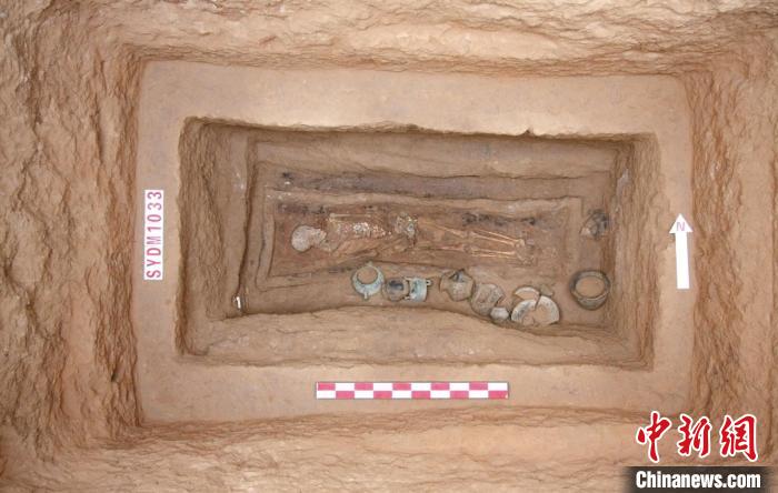 據該考古發掘項目領隊謝堯亭介紹,大河口1033號墓的墓葬規模屬中型墓,墓底中部有一腰坑,其中殉獸一隻。根據以往的研究,M1033的年代為西周中期前段。從墓葬規模、隨葬品種類和數量分析,墓主為霸國的一位中等貴族的夫人。