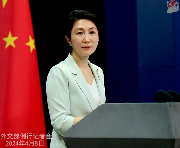 2024年4月8日外交部發言人毛寧主持例行記者會,並答路透社記者有關“奧庫斯”提問。圖片來源:中國外交部
