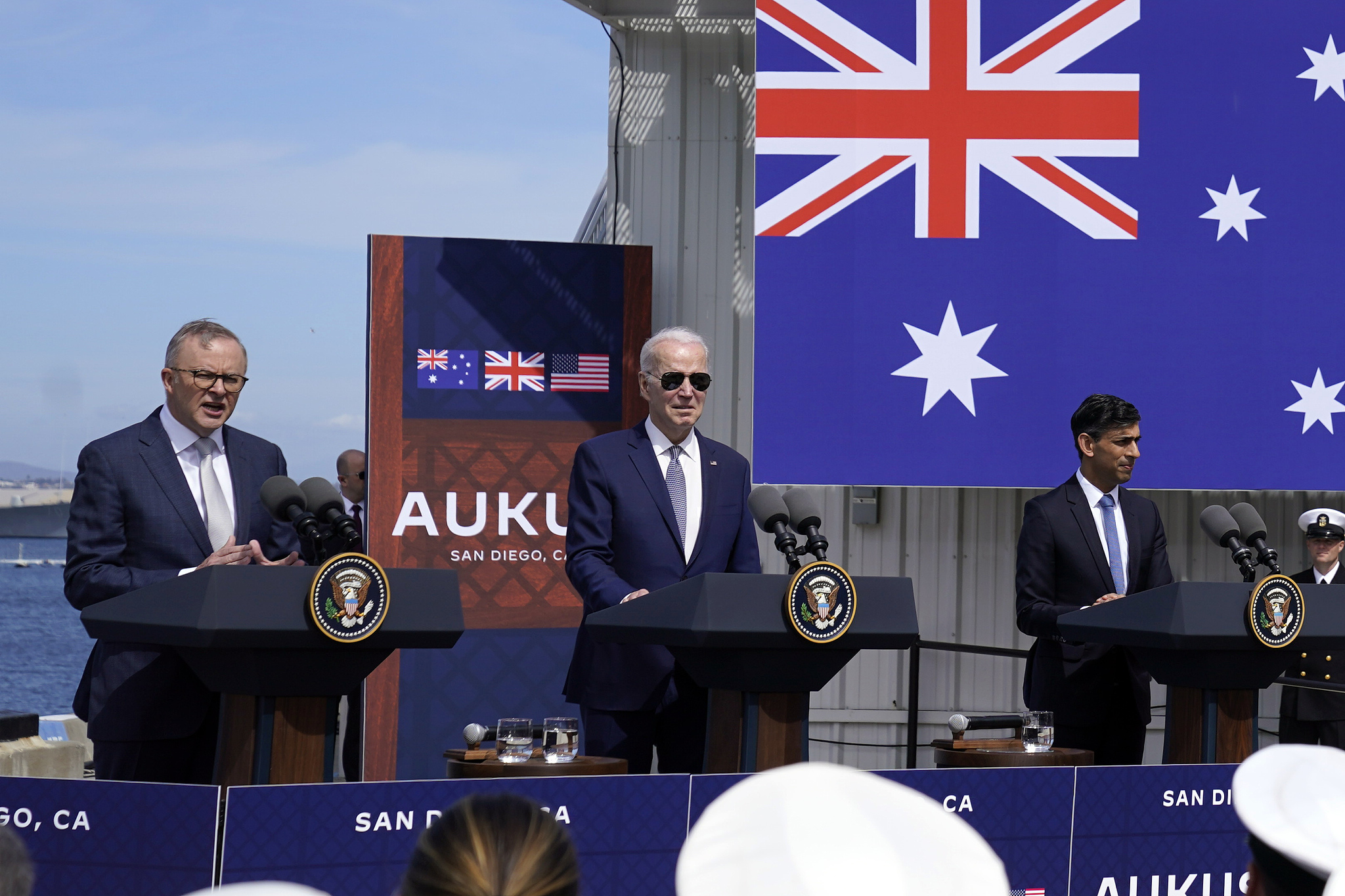 去年3月,美英澳領導人在美國聖迭戈就AUKUS舉行會談 圖源:視覺中國