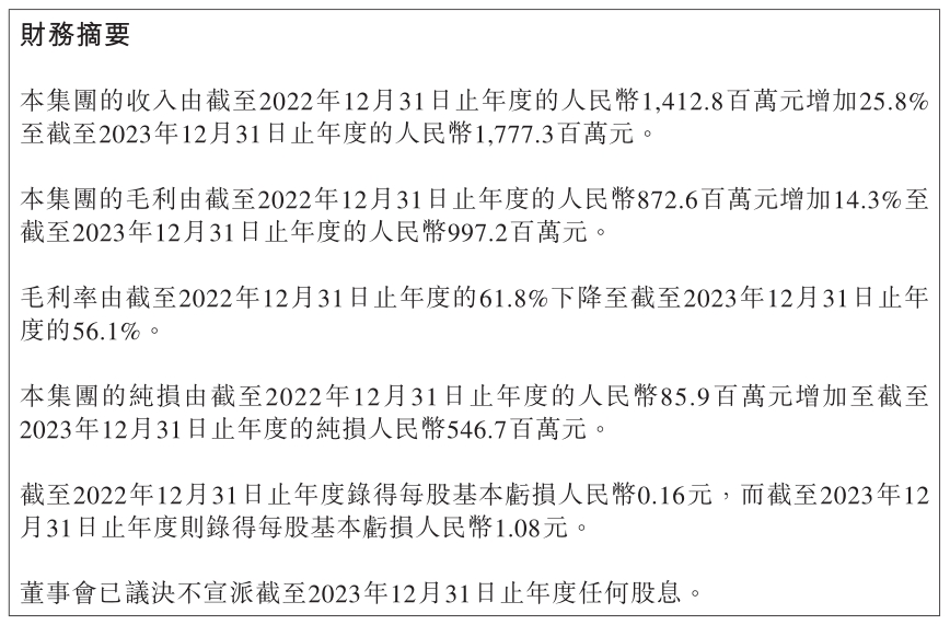 體現在財報數據上,雍禾醫療擴張的成效也相當顯著。2023年全年,企業錄得收入近17.8億元,同比增長25.8%;毛利潤9.97億元,毛利率達到56.1%。