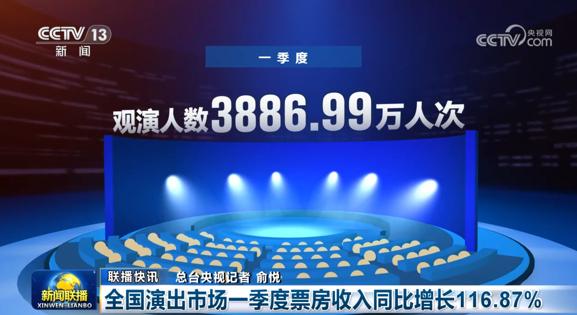 (10)全國演出市場一季度票房收入同比增長116.87%;