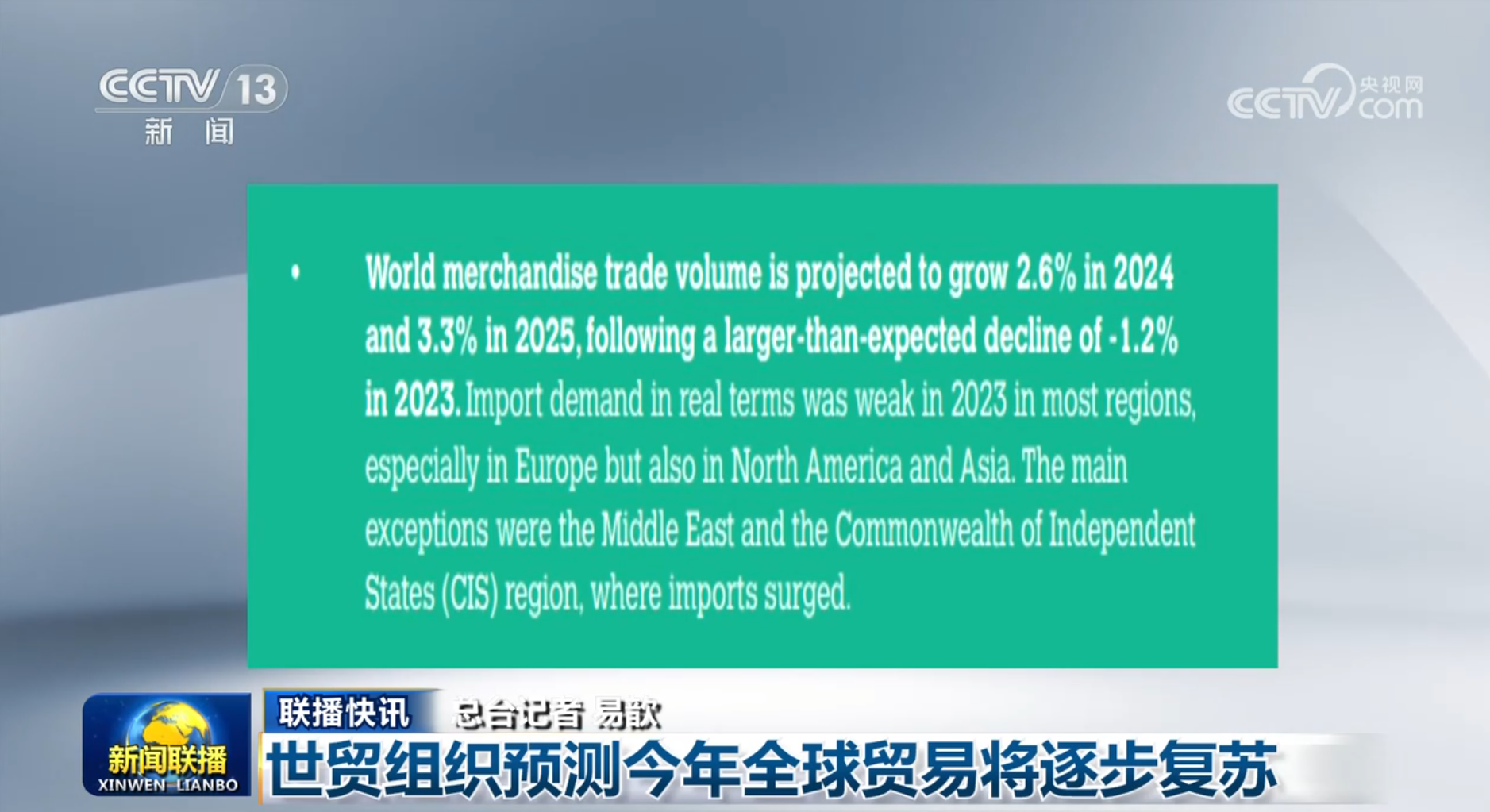 (4)世貿組織預測今年全球貿易將逐步復甦;
