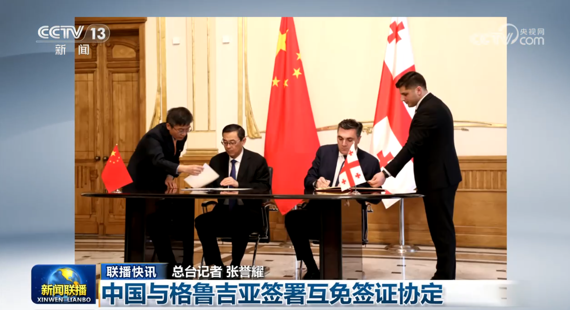 (1)中國與格魯吉亞簽署互免簽證協定;
