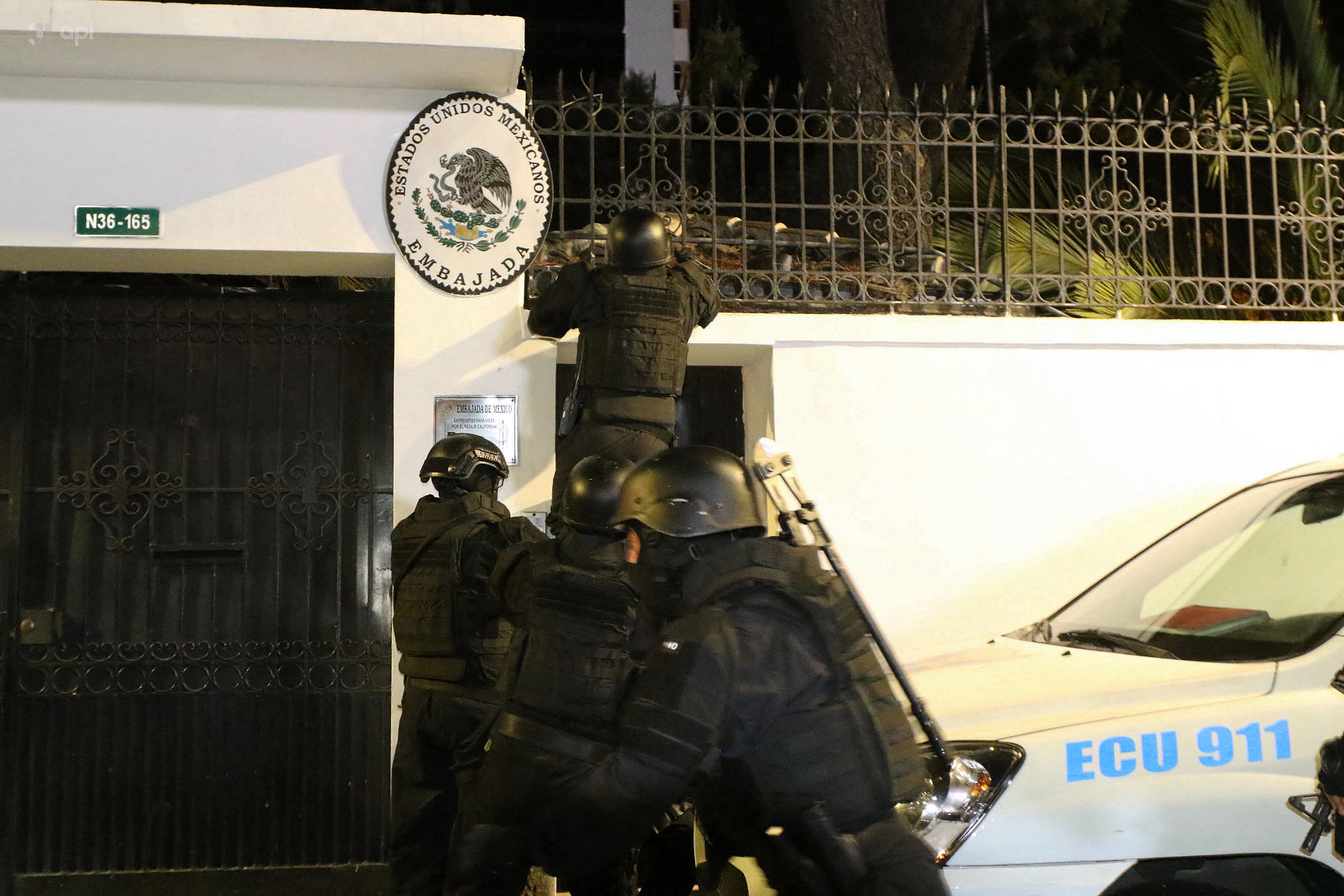 洛佩斯一言,便打開了厄墨兩國外交危機的“潘多拉魔盒”:先是厄外交部發表公報,認定洛佩斯的言論干涉厄內政,違反《維也納外交關係公約》,宣佈墨西哥駐厄大使斯梅克為“不受歡迎的人”;隨後墨政府一改原有態度,突然宣佈正式為格拉斯提供政治庇護(此前墨方拒絕厄方進入使館逮捕格拉斯,但也不承諾答應他的庇護請求);被徹底激怒的厄政府便不再顧及《維也納外交關係公約》的條文要求,直接硬闖墨使館抓人。
