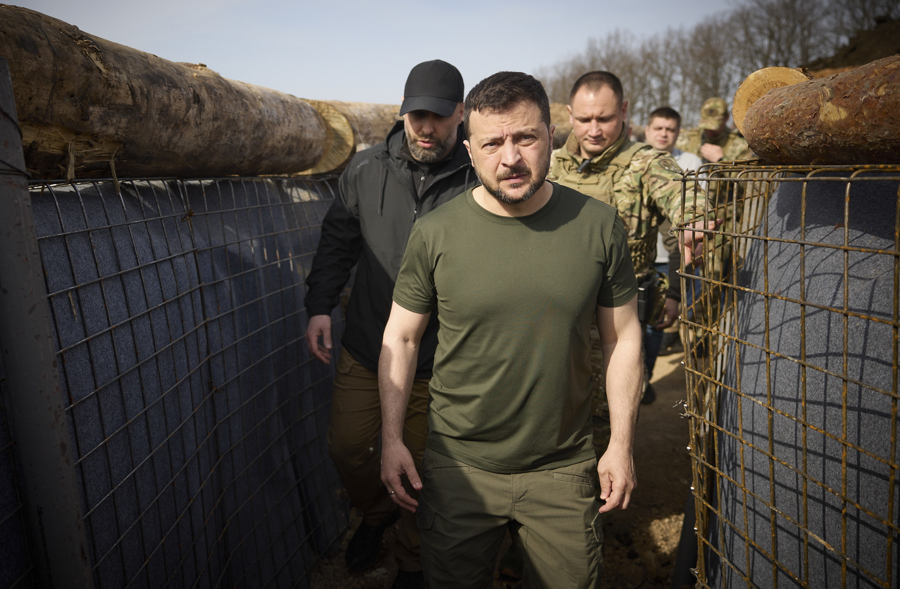 2024年4月9日,澤連斯基視察防禦工事修建情況 / 澎湃影像