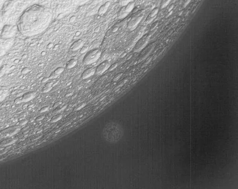 2024年4月8日,天都二號拍攝成像。波長為8-14um的遠紅外譜段月球成像數據,背景中較小的天體為地球